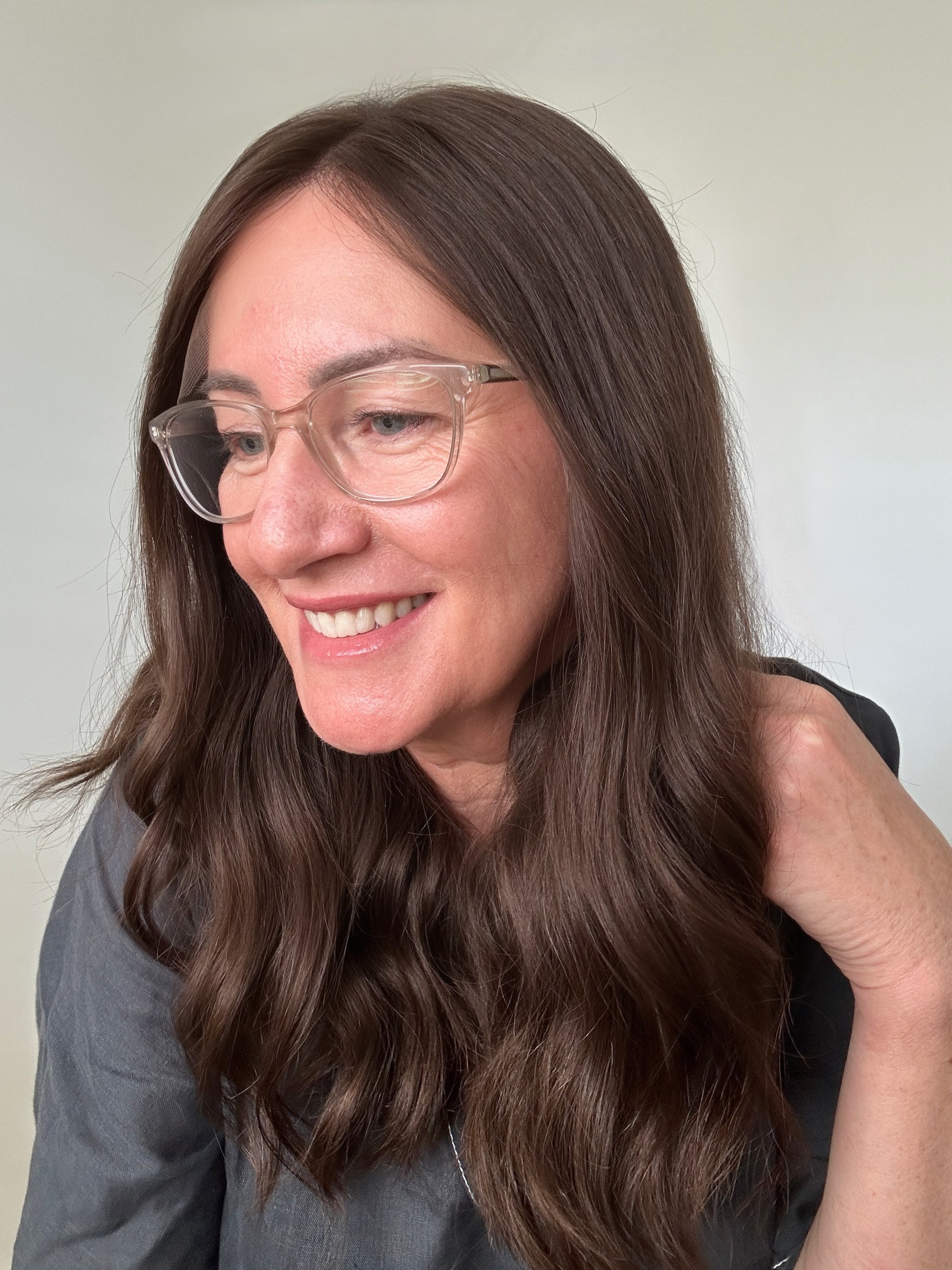 The photos have been taken in natural lighting and no artificial lighting has been used. Depending on the lighting, the topper or wig may differ slightly in appearance.